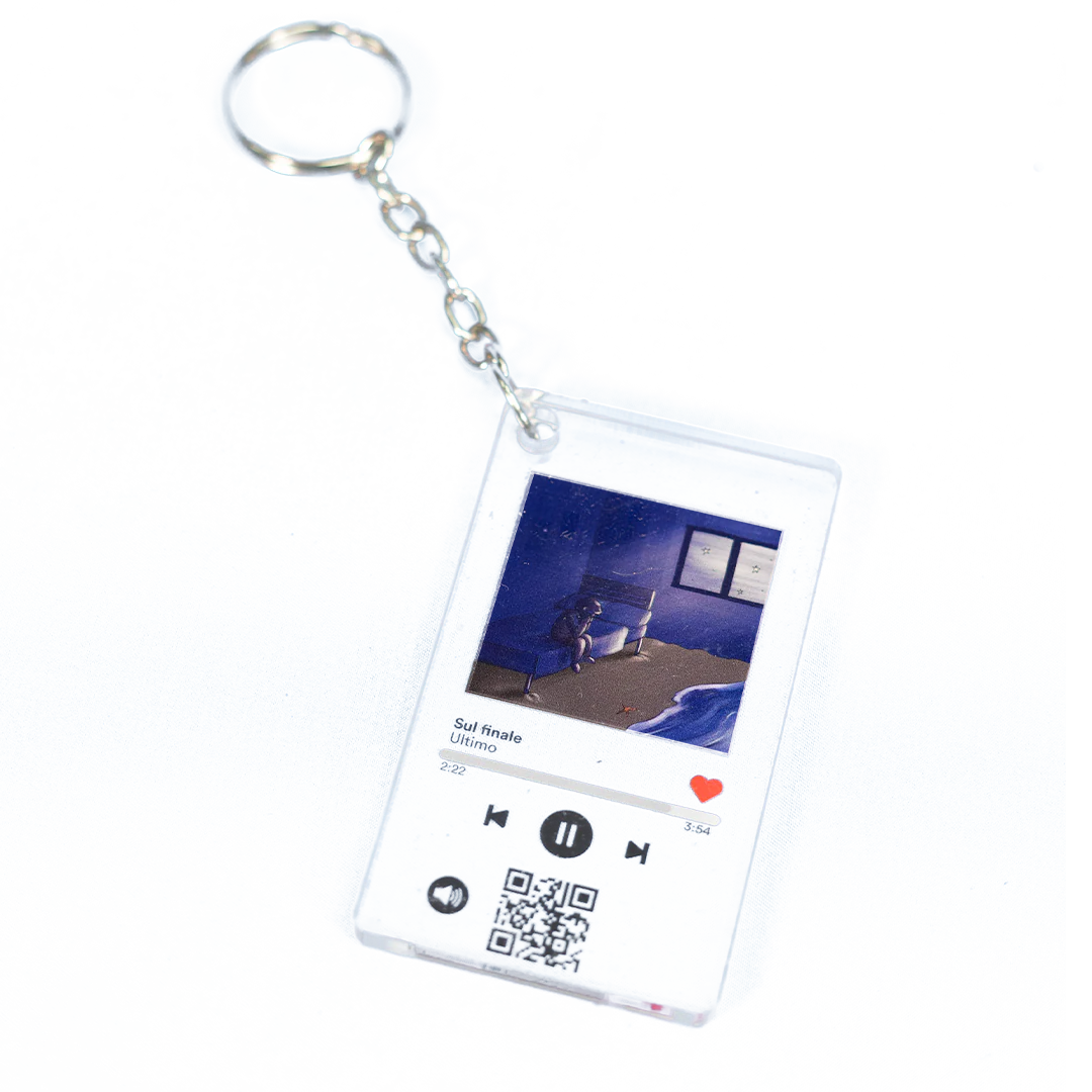 Portachiavi con QR code che rimanda all'ascolto delle canzoni dell'album "Solo". Ogni canzone ha il suo disegno.